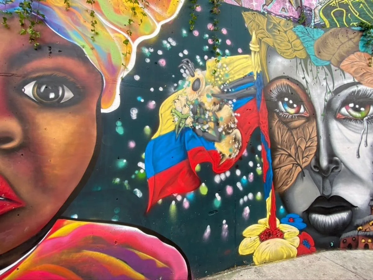Political and climate-centered art by graffiti and mural artist John A. Serna can be seen throughout Medellín, Colombia.
